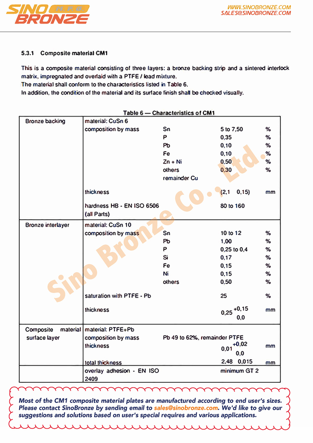 | Specifications of 5.3.1 Composite material CM1 - SinoBronze Co., Ltd. |