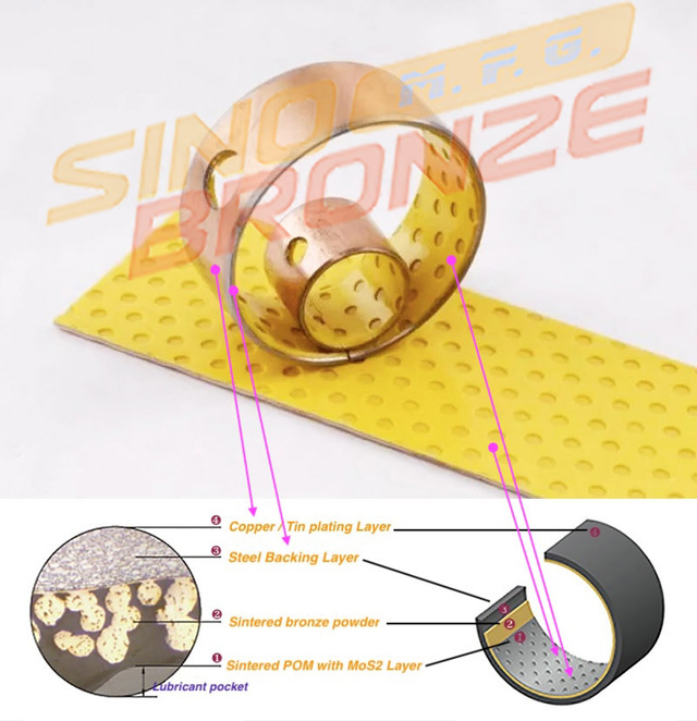 POM + SIntered Bronze Powder + Steel Backing + Copper / Ting-plating