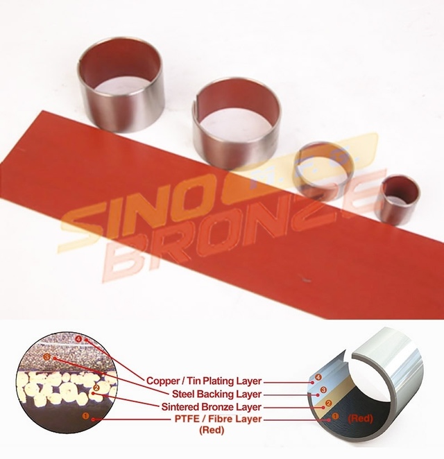 Sintered PTFE and Bronze on Steel Backing, surface with copper-plating or tin-plating